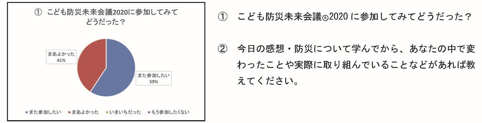 ・リモートだったけどみんなとさんかができてよかったです。コロナがおさまったら長岡でこども防災未来会議に参加したいです。リモートでもう一回やってみたいなと思いました。