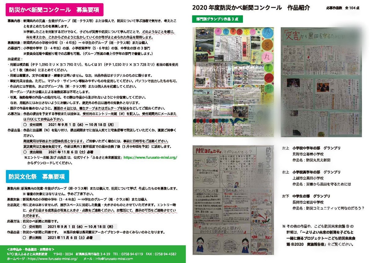 オンラインでの表彰式と県内の児童・生徒がグループまたは個人で、防災について学び、考えたことをまとめた防災かべ新聞の発表会を実施します。