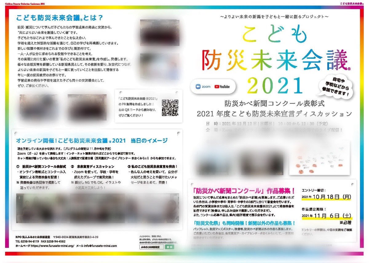 「こども防災未来会議®2021」とは、防災・減災について学んだ子どもたちの学習成果の発表と交流から、”共によりよい未来を創造していく場”です。
