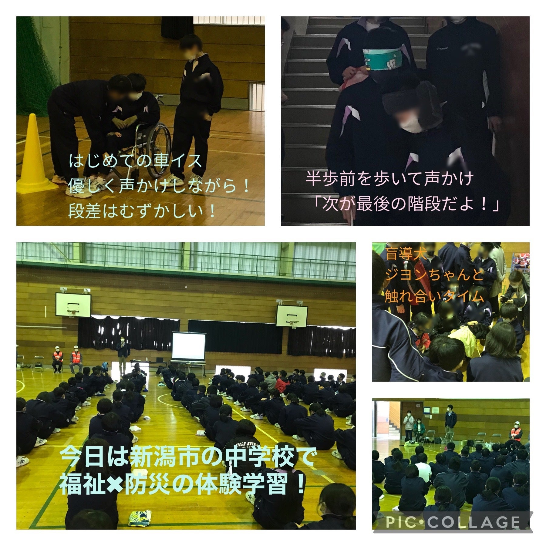 みなさんこんばんは!ふるさと未来創造堂の中野明子です。いつも応援いただきありがとうございます。荒れる天気の中、今日は新潟市西蒲区の中学校で防災学習でした。福祉×防災の視点による体験活動を通して、災害時での要配慮者の支援方法を学びました。地域の防災士や社会福祉協議会、視覚障害者の方等からお話を聞いたり、ペアで支援者側と支援される側の体験をしたりと充実した時間でした。「なるほどー」「どう声かけしたらいい?」「いいね!いいね!」といった声が飛び交っていました。高齢化率の高い地域です。「知らないから迷っているうちに動けなかった」ではなく、「いざという時にも、普段から、率先して行動を起こせる中学生」に。そして、誰かのためだけではなく、みんなが安心して過ごせる場所は自分もしあわせで、みんなもしあわせなんだ。そう伝えると力強くうなず中学生の姿。防災をきっかけに、よりよい未来を切り拓いていく。そんな姿をこども防災未来会議でも見れるのではないかな~と思います。さて、クラウドファンディングもあと6時間を切りました。引き続き応援の程よろしくお願いします(^^)/