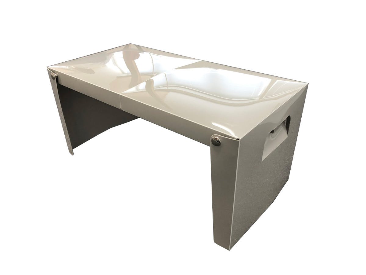 天板の裏側で強度を保つ構造なので、折り目のある中央への荷重にも耐えることができます。