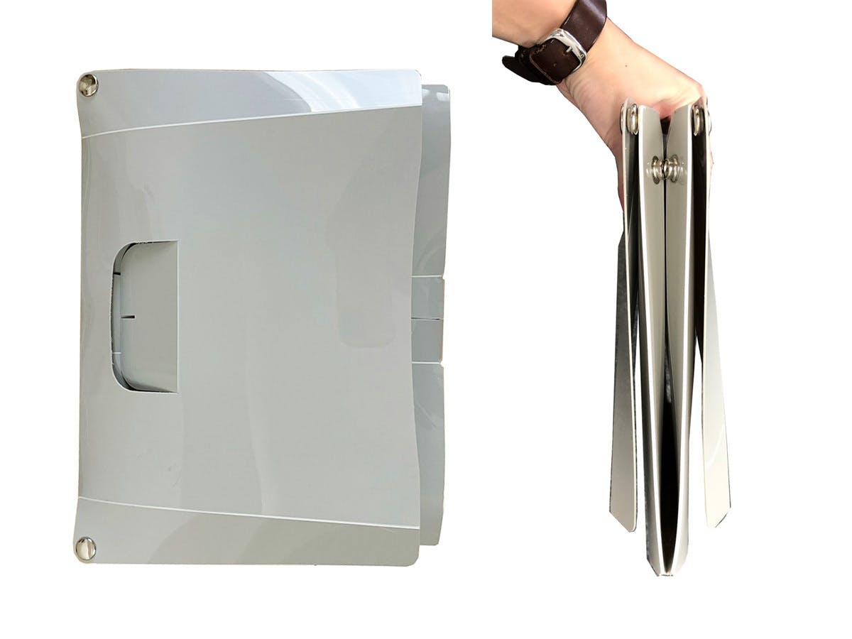 折りたためばここまで小さくて薄くなり、リュックの中に入れて持ち運ぶことができます。