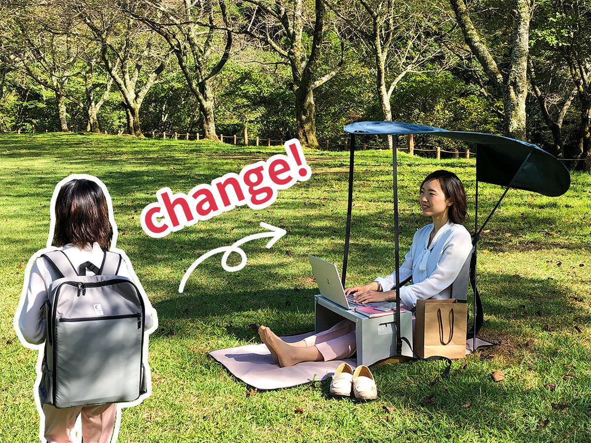公園でもビーチでも!手軽にデスクワークできる「どこでもオフィスセット」