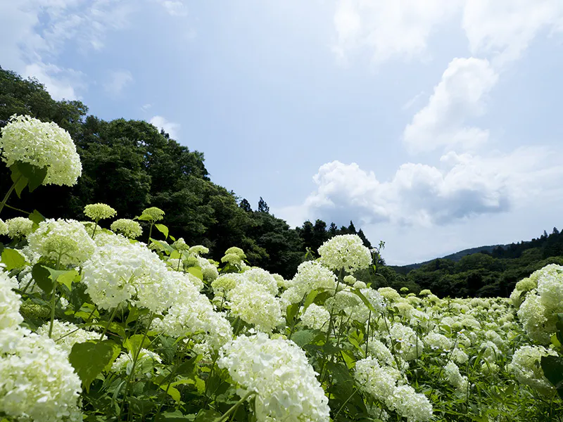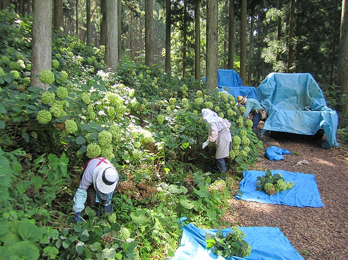 岩手県一関市「みちのくあじさい園」でのアナベルの収穫の様子