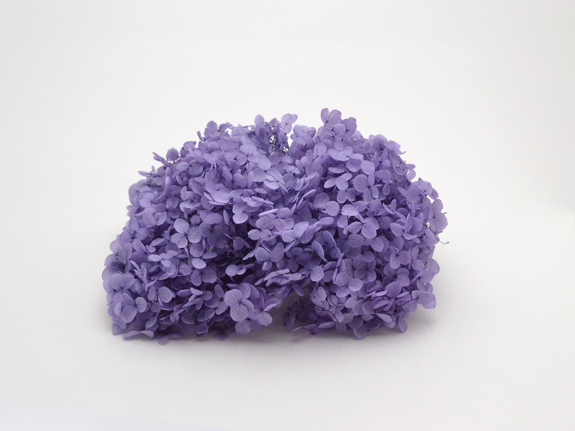 現在、クラウドファンディングのプロジェクトと並行して、メーカーさんと新色のラベンダーの色作りについて打ち合わせをすすめております。その進捗状況のご報告です。以前、岩手県の工場で作っていた「ラベンダー色」が基準色となります。これを、便宜上「キーサンプル」と名付けますね。基準色のラベンダーこのキーサンプルを元に、もう少しやわらかめの色を目指します。というのも、このラベンダー色だと赤みが強過ぎるので、もう少し落ち着いた色にして欲しいというご要望が多かったからなんです。(アクセサリーにする場合、紫系の色は、赤みが強すぎるとちょっと派手に見えてしまうらしいです)ということで、メーカーさんに上記の趣旨を説明して、まず元になるサンプルをつくってもらいました。それが、このファーストサンプルです。最初のカラーサンプルラベンダー特有の紫系の赤みはだいぶ減って、やさしい印象の色味になりました。ですが、これでは、少し青みが強すぎて、ラベンダーの紫感がでていません。そこで、もう少し赤みを強めてもらうようにメーカーさんにお願いしました。ただ、ここで問題が発生します。ここからは、製造工程の話になるので、メーカーさんが教えてくれたことではなく、以前岩手の工場でやっていた事をベースにお話します。プリザーブドフラワーの染色方法は、素材を染料を溶かした水溶液の中に入れて染めていきます。なので、水に溶かす前の染料の調合が重要なポイントになってきます。紫系の色を出すのであれば、赤系と青系の染料をちょうど良い配分で調合するような感じです。そして、ここが非常に難しいところなのですが、この調合具合がちょうどよいバランスのところに落ち着かないと、どちらかの色が、紫外線や乾燥具合といった外的要因によって、消えていってしまうんです。たとえばですが、紫系の色を作ろうとして調合したものの、うまくバランスの良い調合具合にならず、完成した時は紫色に見えても、その後すぐに青系の色味が薄くなっていき、最初の紫系とはまったくちがう赤い色になってしまった・・・といった具合です。赤と青が混ざる「ラベンダー」系は特に色の調合が難しいらしく、メーカーさんからも赤みの成分を上げつつ安定した色にすることは、量産には不向きかもしれないとのお話もありました。とはいいつつも、なんとか再度製作をお願いして、セカンドサンプルが出来上がります。2回目のカラーサンプルファーストサンプルよりは、赤みが出てますが、やっぱり青みが強いですね。わかりやすいように、並べてみましょう。ほんのわずかですが、色味の違いがわかりますでしょうか。ただ、この微妙な色合いの違いを出すのは、とても高度な技術を要するので、メーカーさんには本当に感謝しています。とはいえ、やっぱりラベンダーというには、ちょっと色が薄いかなというのが正直なところです。最初のキーサンプルからもちょっと離れすぎている印象がありました。すべてのサンプルを並べてみたそして、現在、3回目のサンプル出しをお願いしております。基本的には、キーサンプルとセカンドサンプルの間くらいの色を目標としています。ある程度の目安がわかってきたので、次回はある程度近いものができるのではないかと思います。サードサンプルができましたら、改めて、こちらにて報告させていただきます。あじさいや高垣
