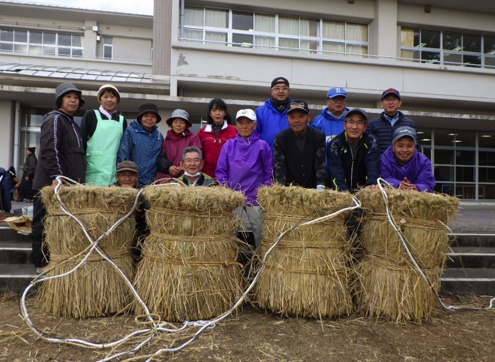 《地域の人たちとしめ縄を運んでいる様子》
