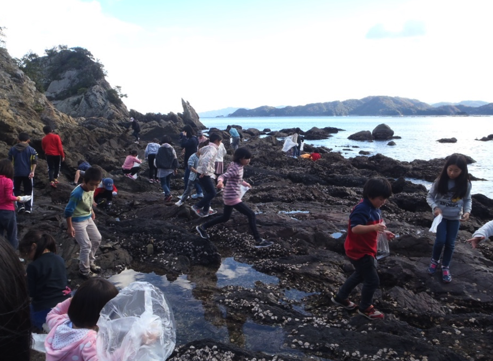 《普段は馴染みのない海で楽しそうな荻町の子ども達》