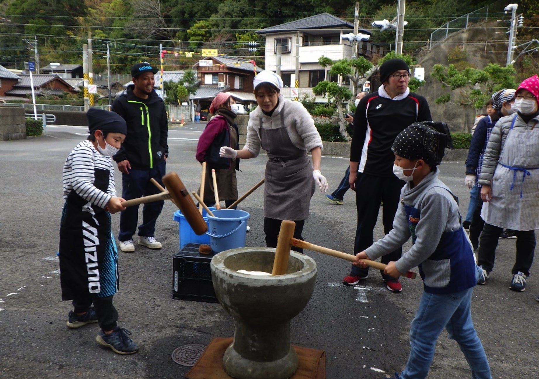 《荻町で作った餅米で一緒に餅つき交流会もします》