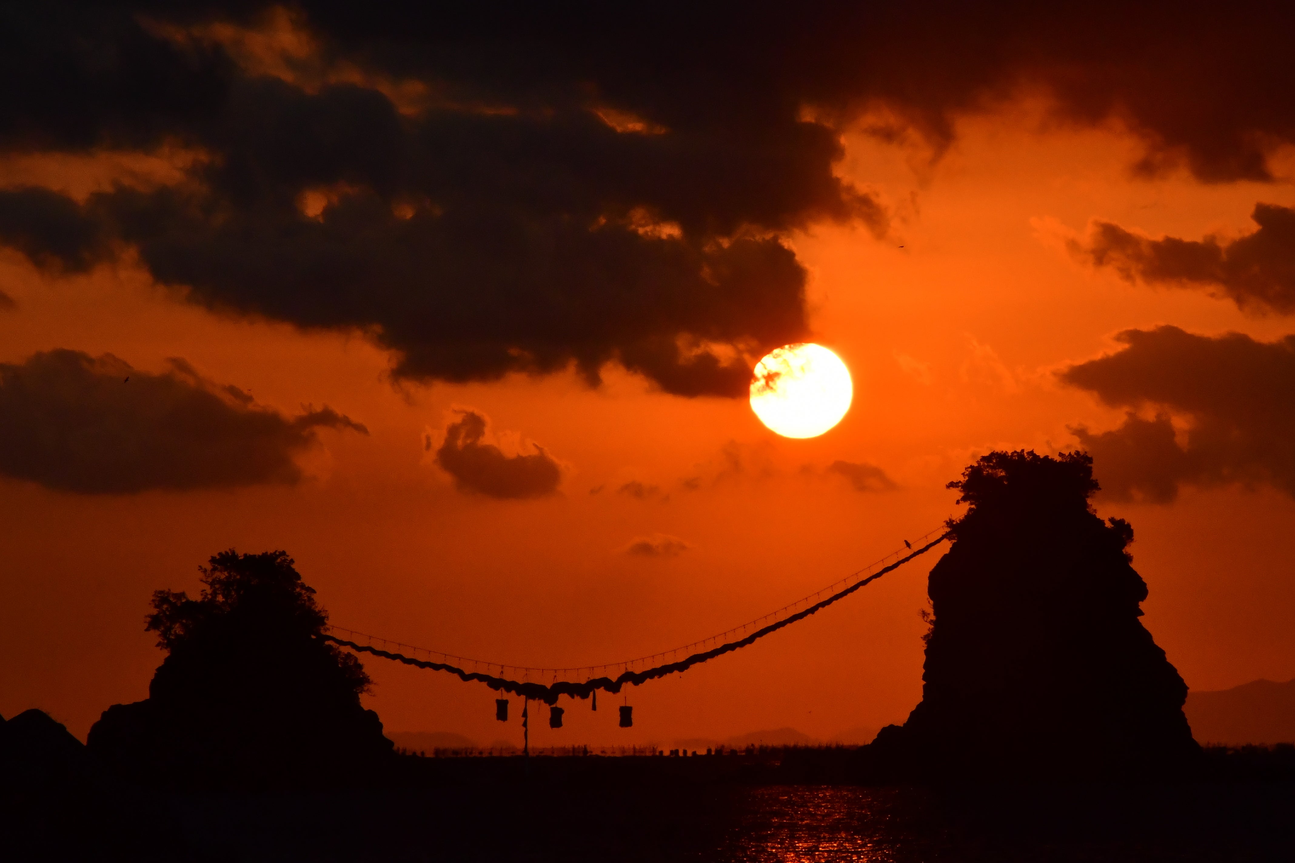 そもそも、大しめ縄というアイディアは、三重県伊勢市にある『二見興玉(ふたみおきたま)神社の沖にある夫婦岩に架かる大しめ縄』に着想を得ています。