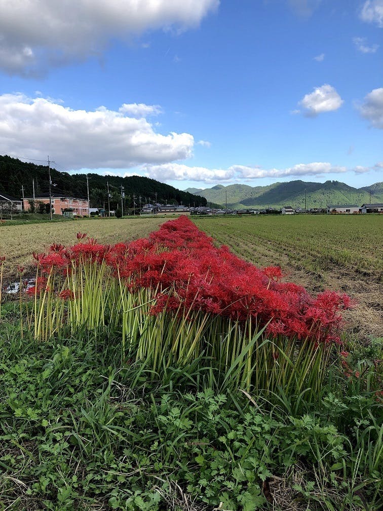 緑が豊かで、あちらこちらに鳥のさえずりが聞こえます。秋ごろには田んぼが色づき、まるで少しづつ彩の異なった黄金色の絨毯が地域一面に敷き詰められているようです。