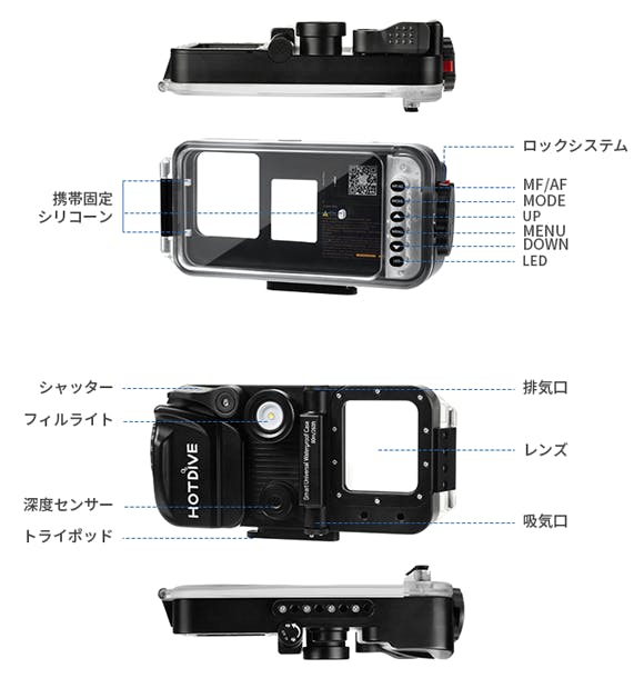 「HOTDIVE H2 Pro」は、水中で使用することを考えたシンプルで便利な設計。