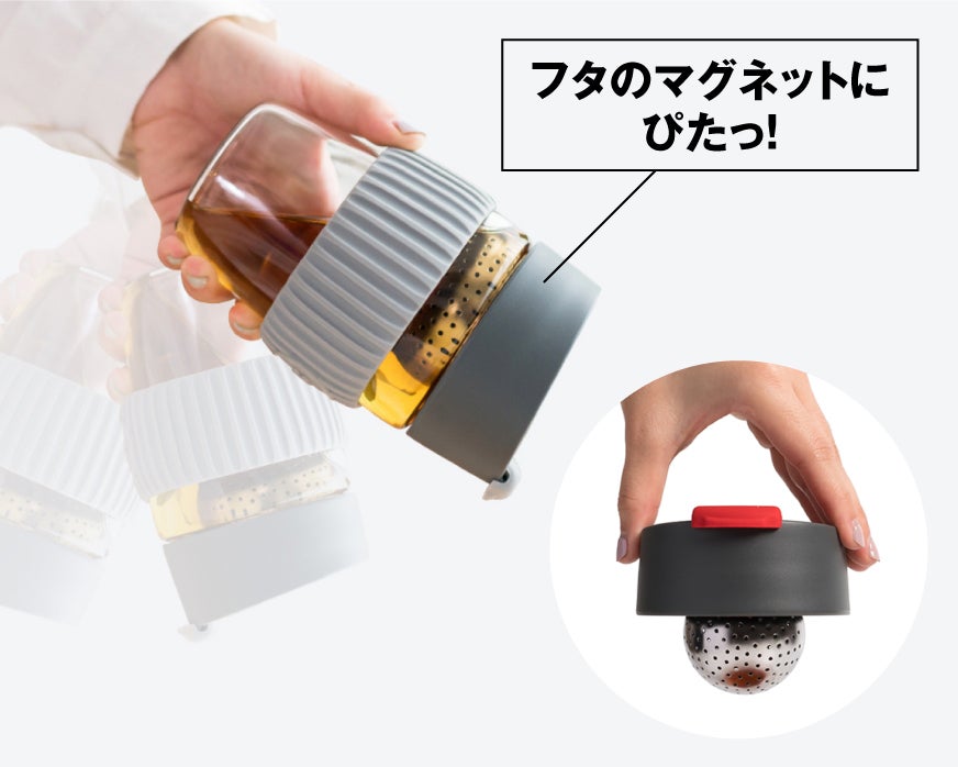 フタのマグネットにティーインフューザーが“ぴたっ” 。