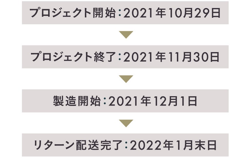 ◯ 商品引渡しまたは役務提供の時期:各プロジェクトが募集期間内に成立した場合のみ、支援金の決済が行われ、約定されたリターンを得る権利が発生します。なお、リターン毎の発送(履行)時期は各プロジェクトの記載・連絡に準じます。諸般の事情により遅延・遅配が生じる場合は、プロジェクトオーナーより記載・連絡されるものとします。