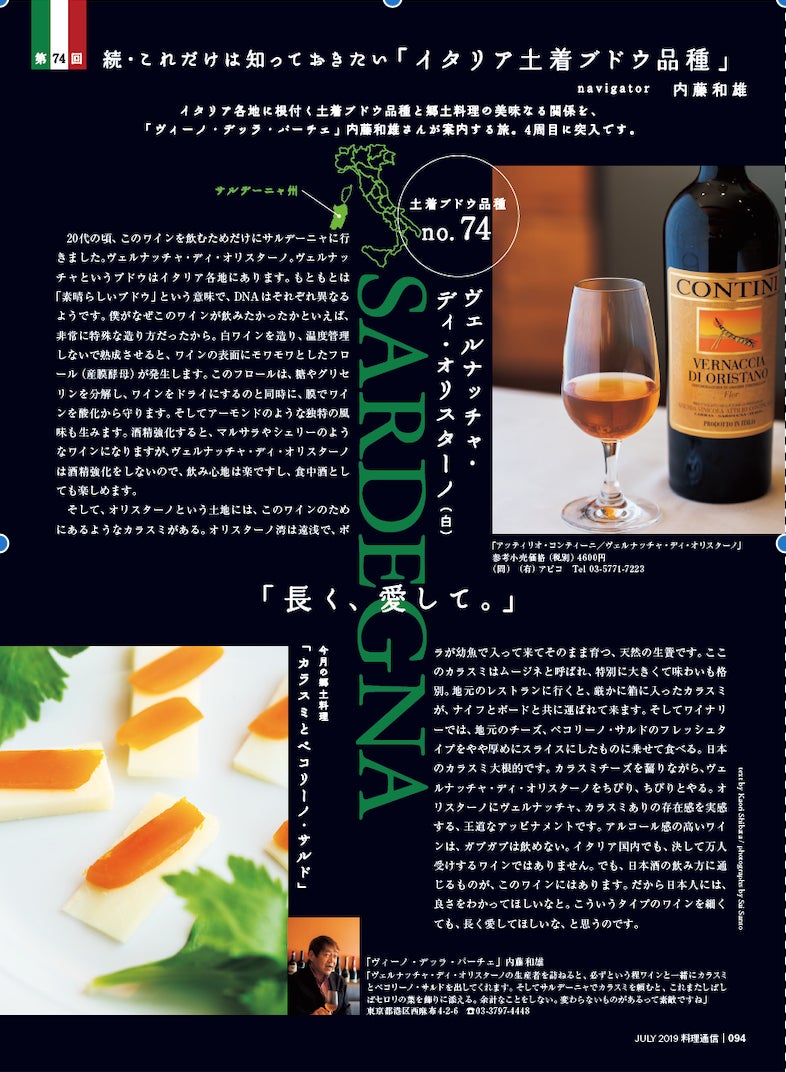 「料理通信」”これだけは知っておきたい「イタリア土着ブドウ品種」’掲載事例。
