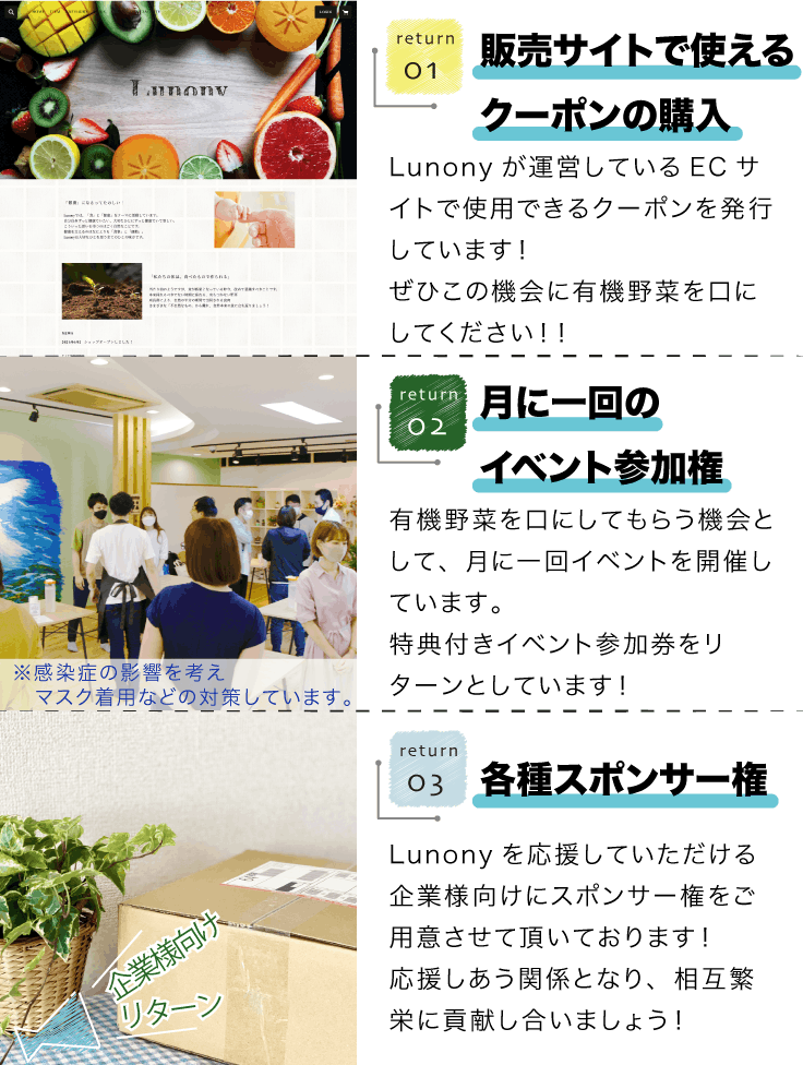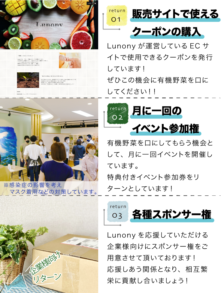 有機野菜や健康的な食事とは何かを、とにかく楽しみながら広めていこうとする、Lunonyのプロジェクトを応援しています。