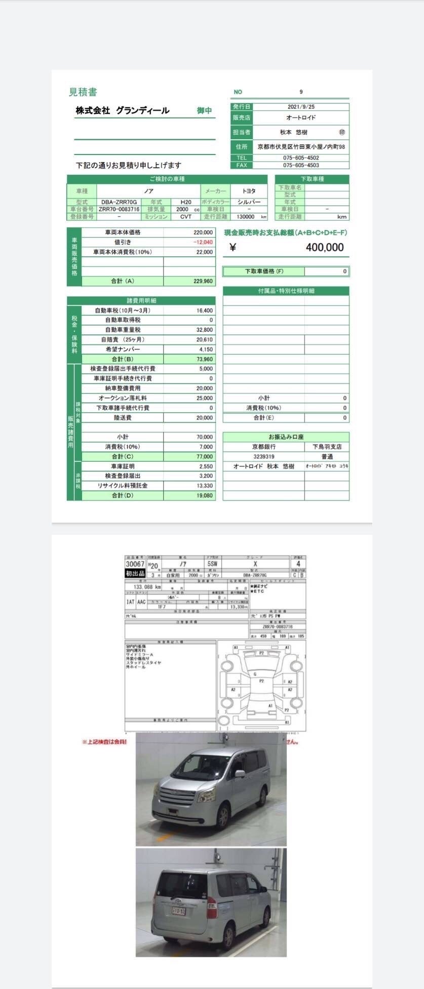 実際に購入した車の領収書、写真などの報告書を送らせていただきます。