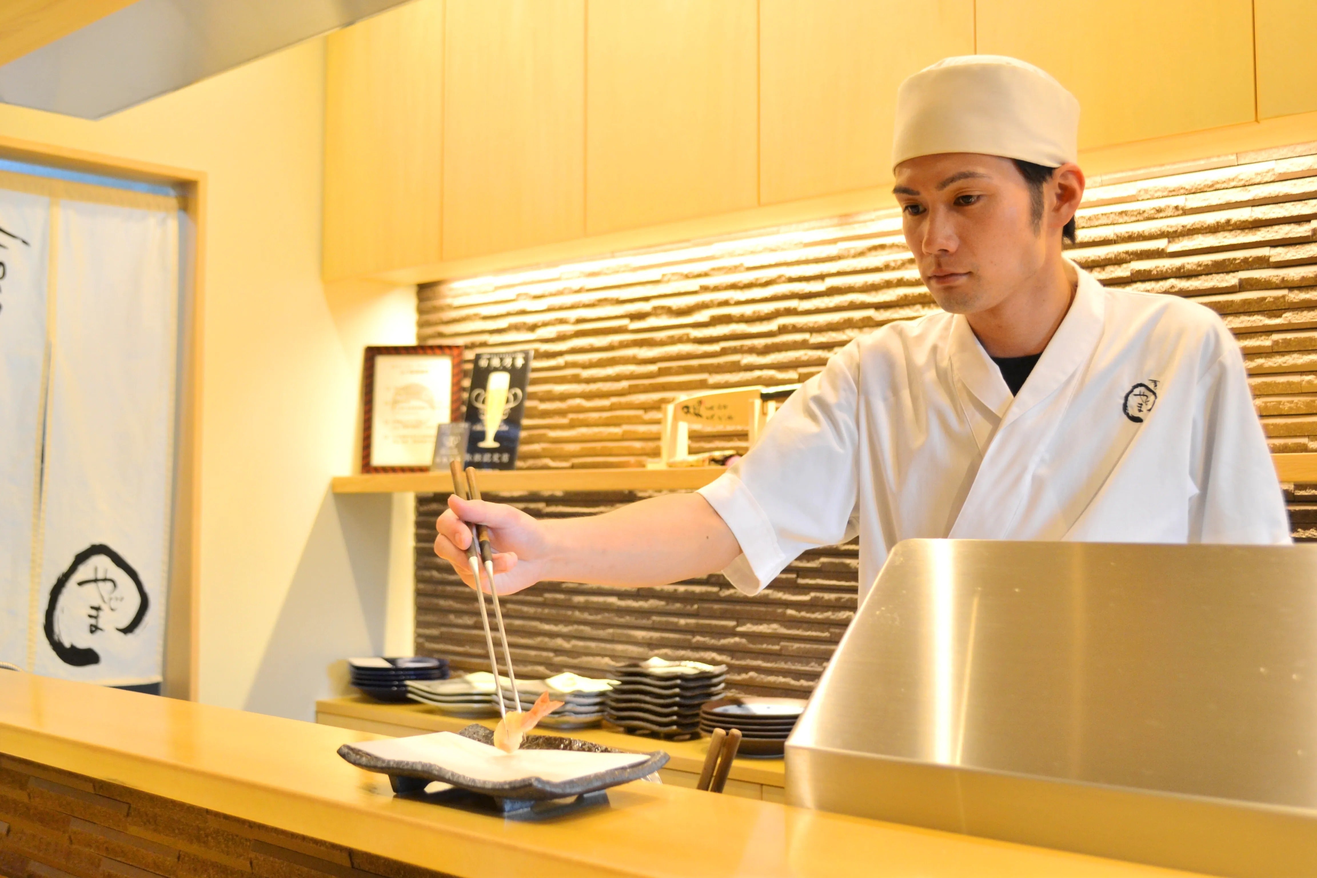 キャリアについて詳しくお話させて頂きます。16歳の時に料理の世界に魅了され、住吉の高級すし店で、修行を開始、その後19歳~30歳を迎えるまでの10年間名古屋の飲食店激戦区「錦」、「泉」の懐石料理屋、天ぷら割烹、和食屋で腕を磨き、30歳で