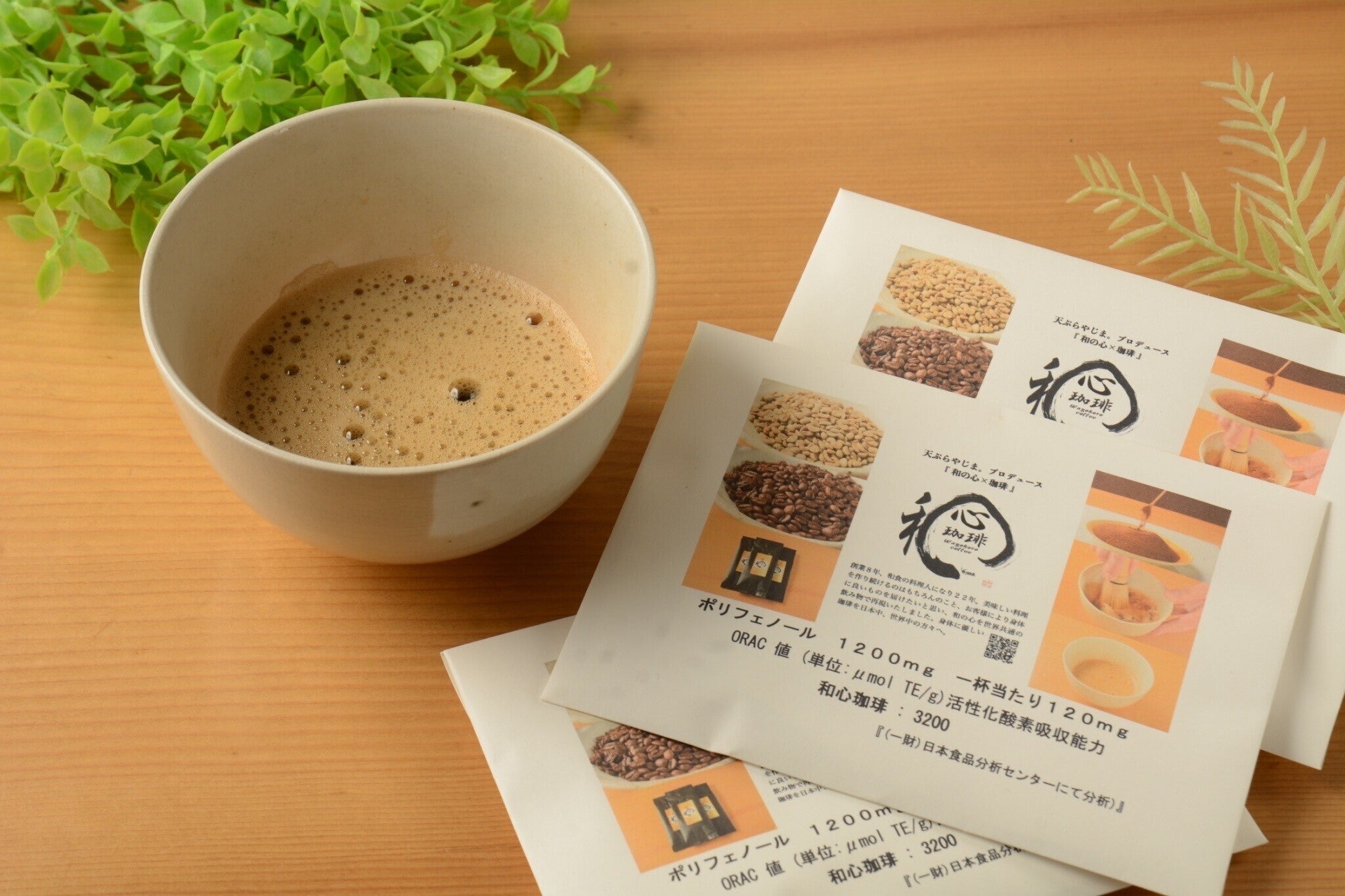 やじま。珈琲1gに対して60gのお湯を入れ茶筅で立てて抹茶仕立てにすると香りがお楽しみいただけます。和心珈琲1gに対して120~150㏄のお湯を入れコーヒーとして楽しみ下さい。