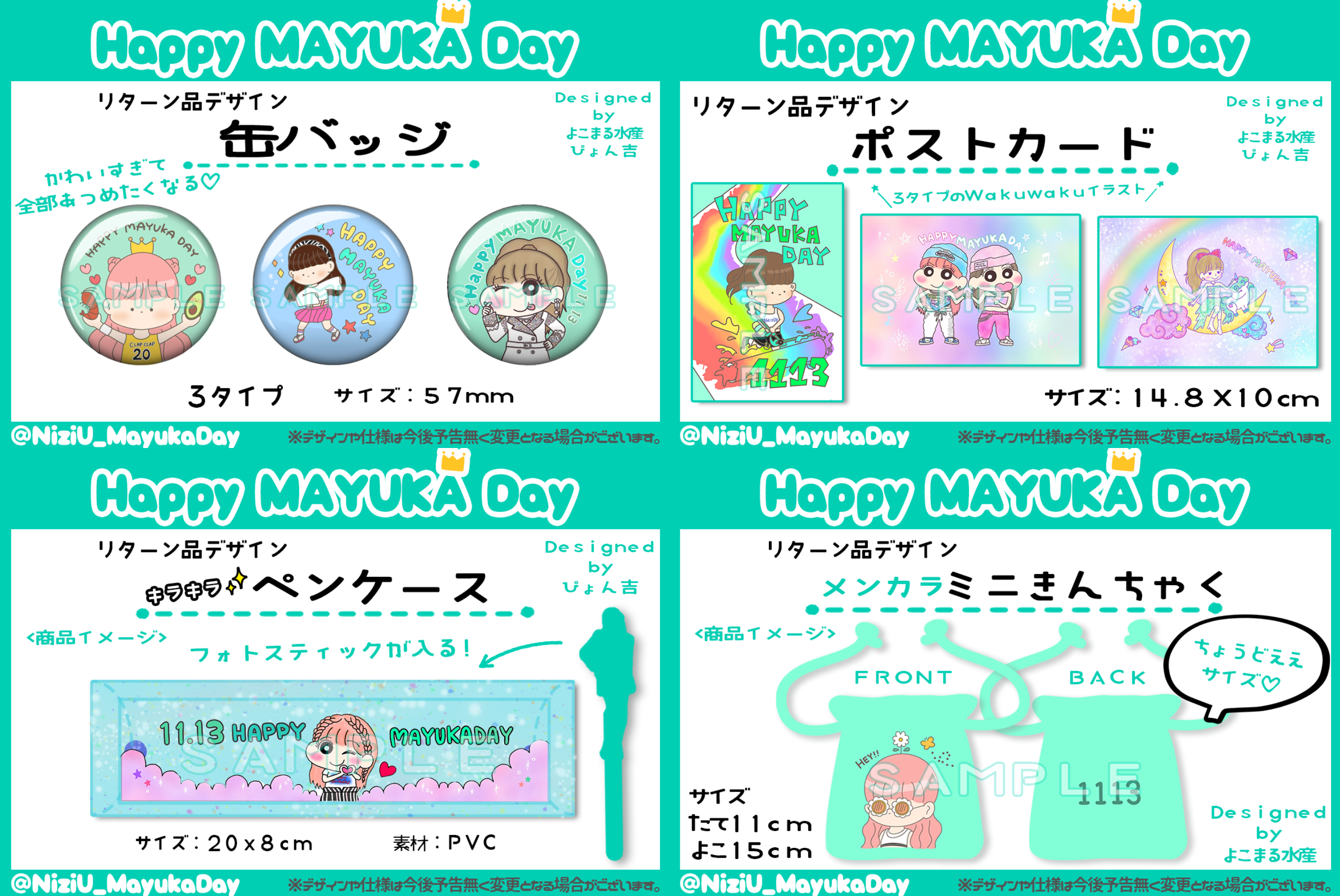 ●ポストカード、缶バッチ、ペンポーチ、ミニ巾着はご登録のご住所宛にお送りいたします。