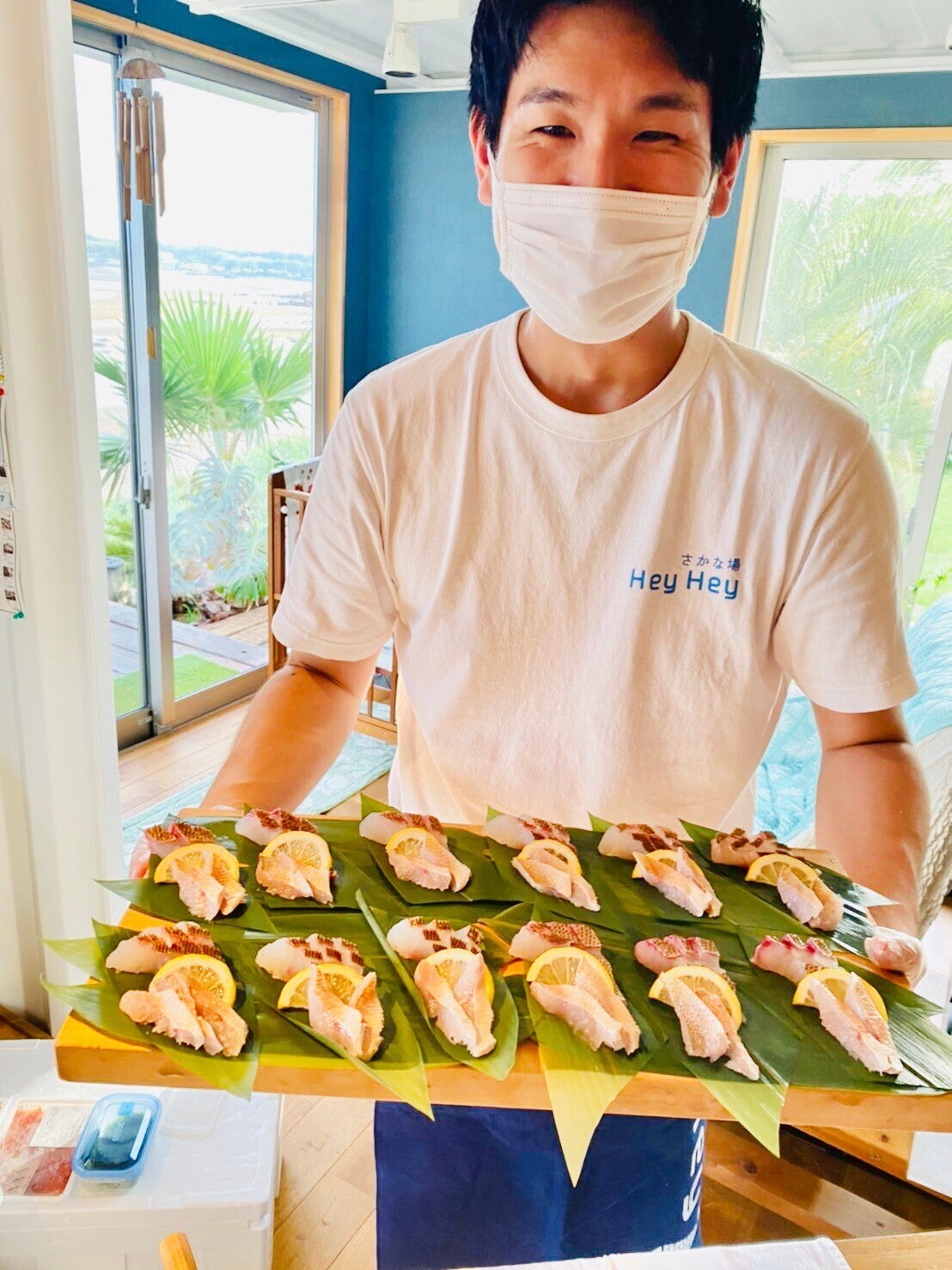 (写真:こちらのHeyHeyスタジオで魚の販売を行なっております)