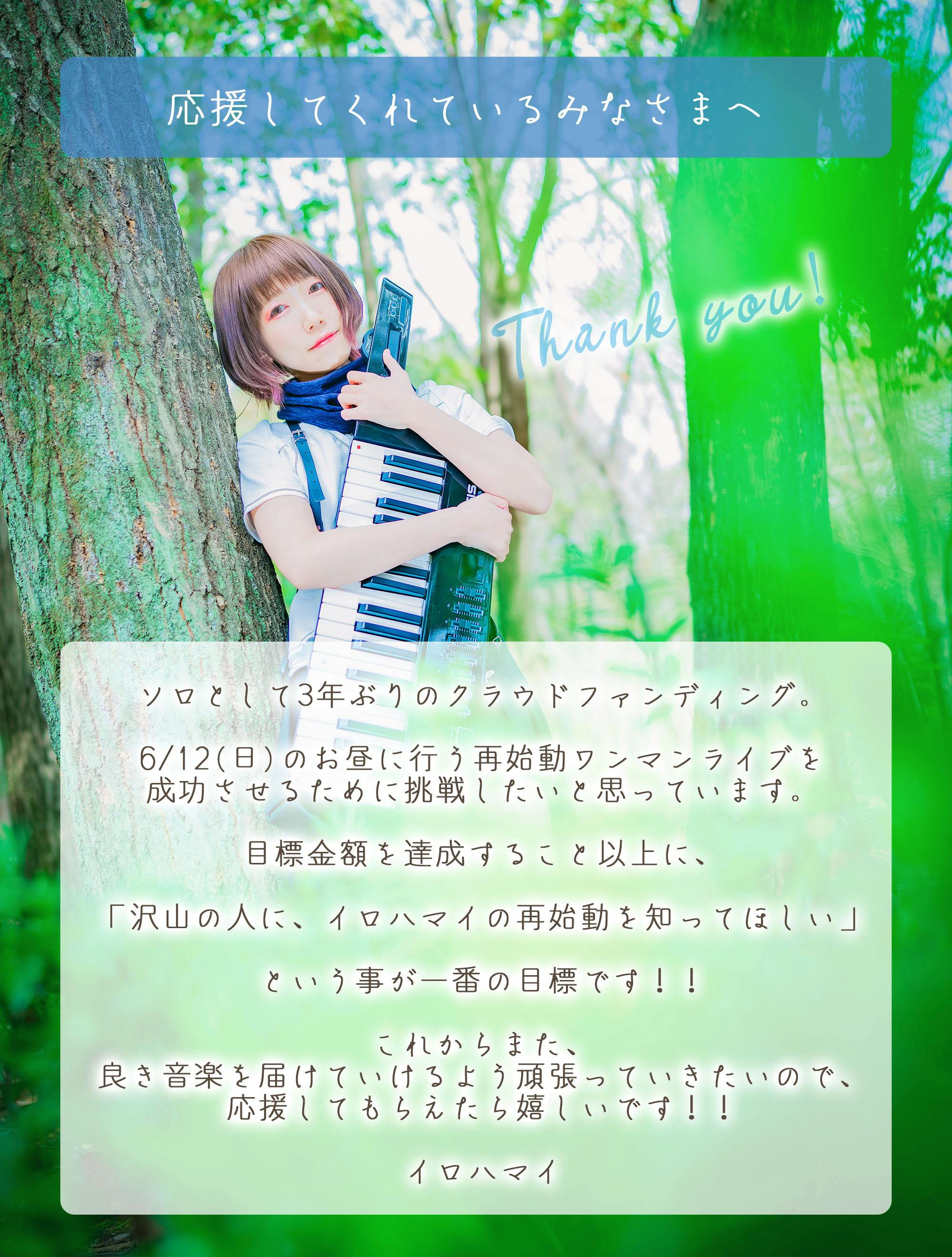 今回のプロジェクトに挑戦することで、イロハマイが再始動する事をたくさんの人に知ってほしいと思い、このプロジェクトを立ち上げました!