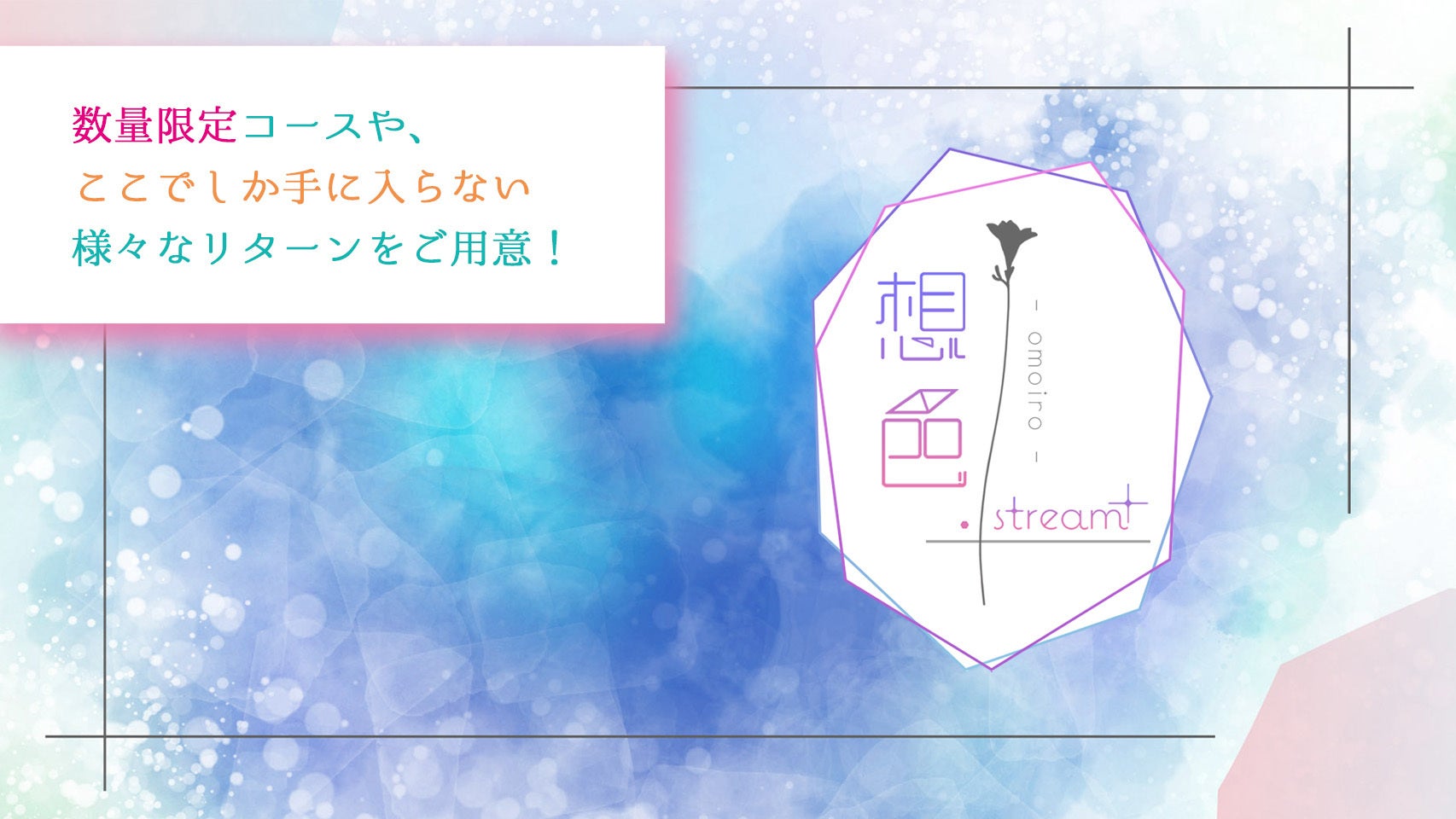 数量限定コースや、ここでしか手に入らないリターン、これからの想色.stream+を一緒に作っていけるコースもございますので、ぜひご覧下さい!