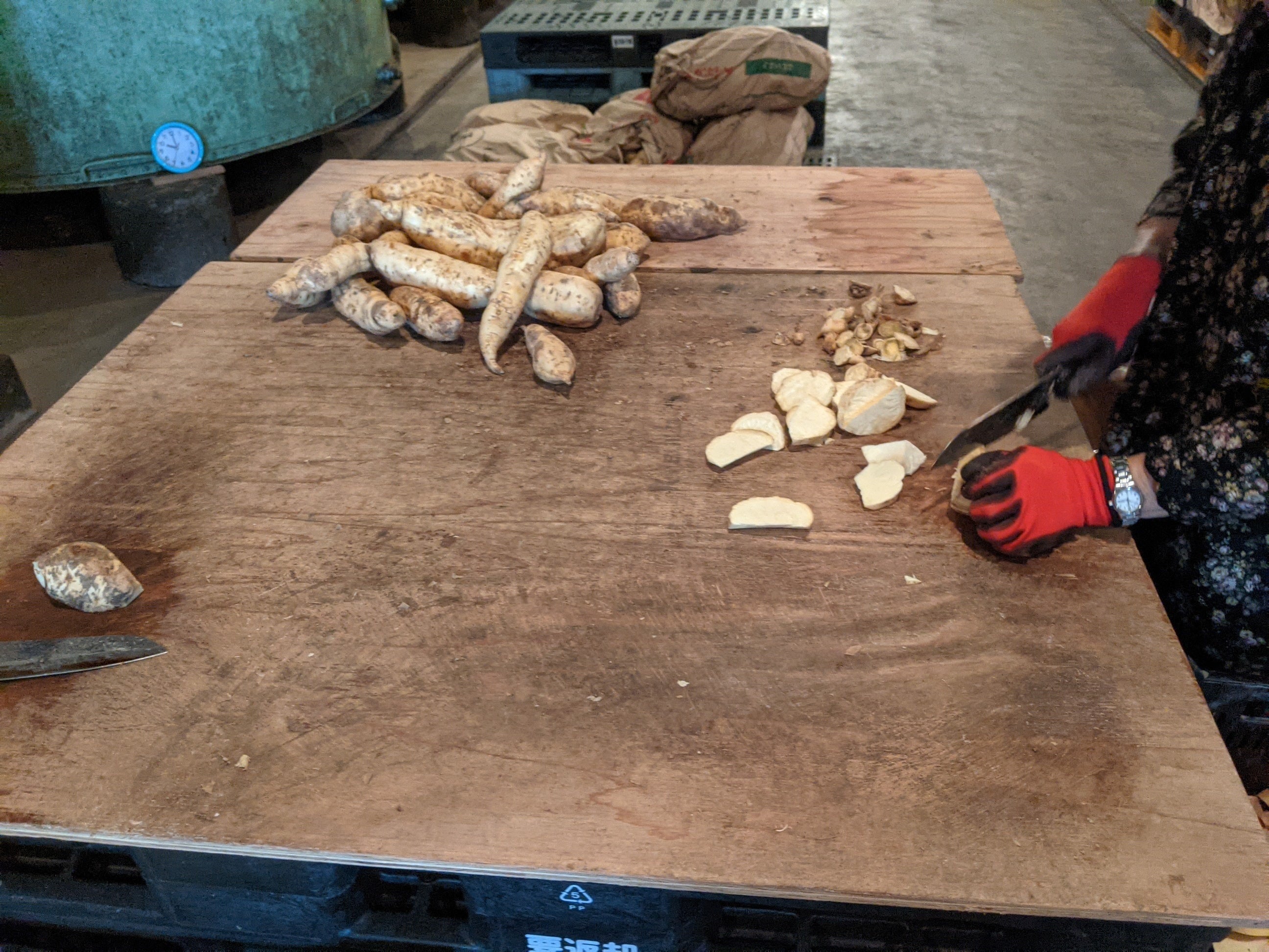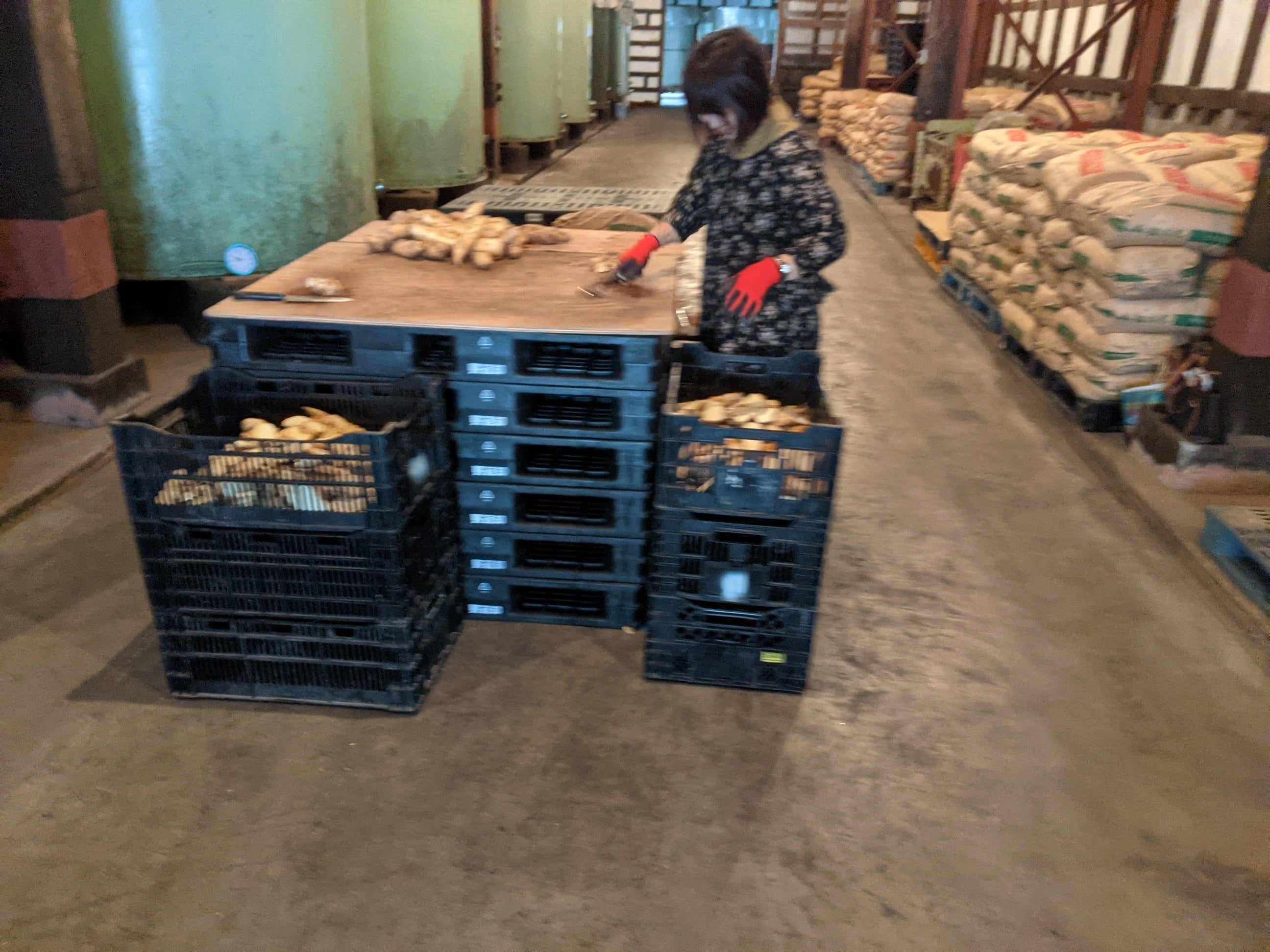 先日届けた黄金千貫を金升酒造さんが下処理して下さっています。