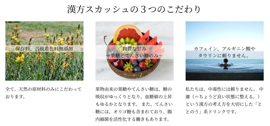 という3つの要素をかけあわせ、漢方スカッシュを開発しました。