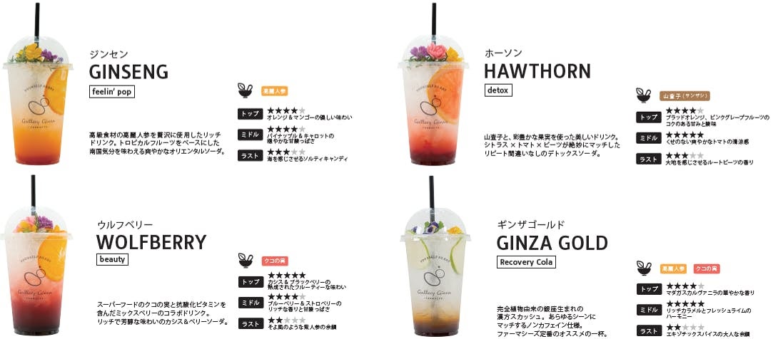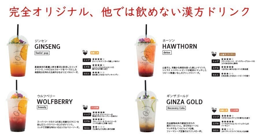 健康面だけでなく、おいしく漢方を楽しんで頂くためフレッシュフルーツやボタニカルハーブを使い、ビジュアルにも徹底的にこだわっています。