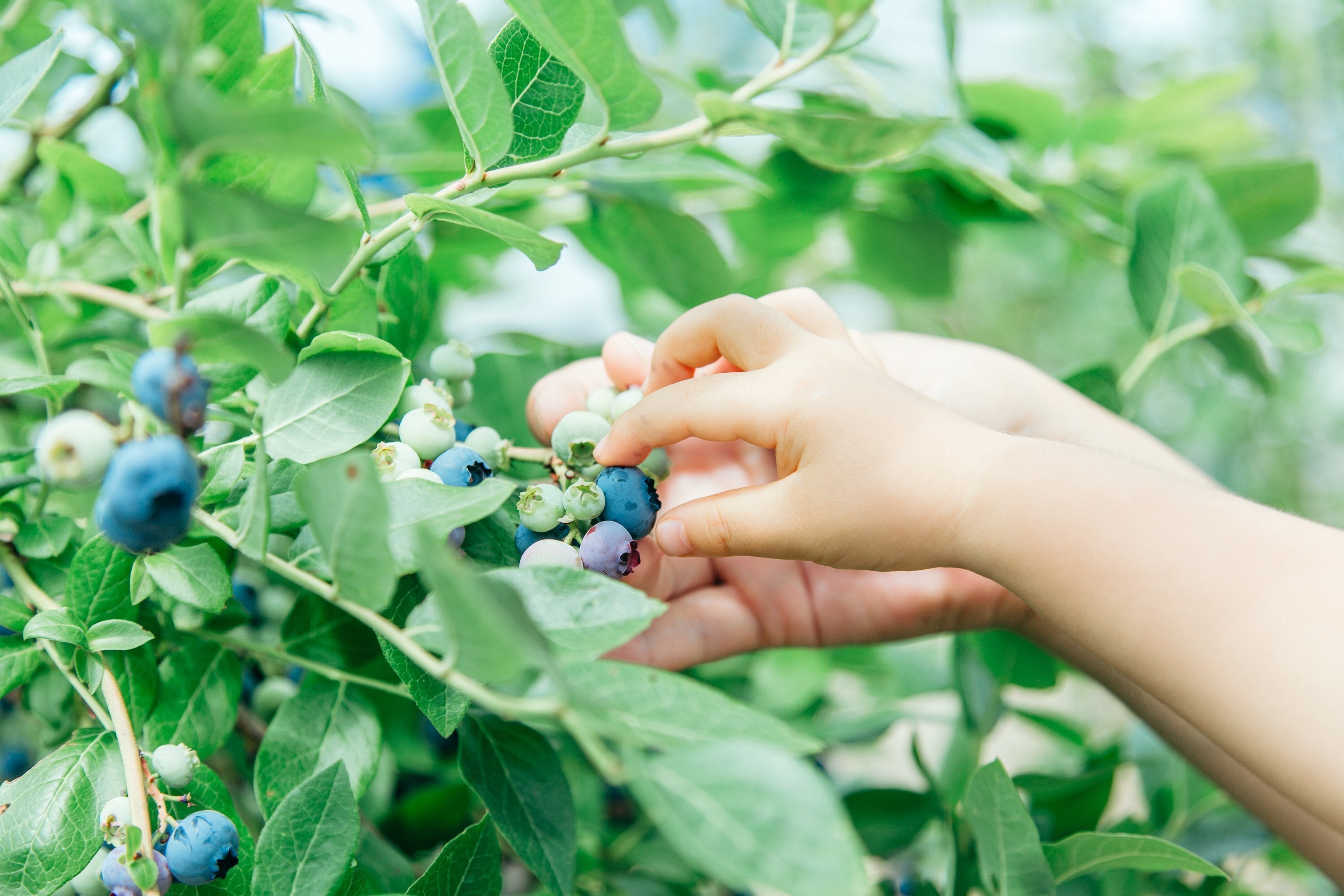 お休みの初日は、畑へ!ブルーベリー好きな娘は、自分で採ったブルーベリーの甘酸っぱさにおおはしゃぎでした。勢いそのままに、100粒以上食べていました。