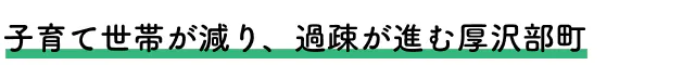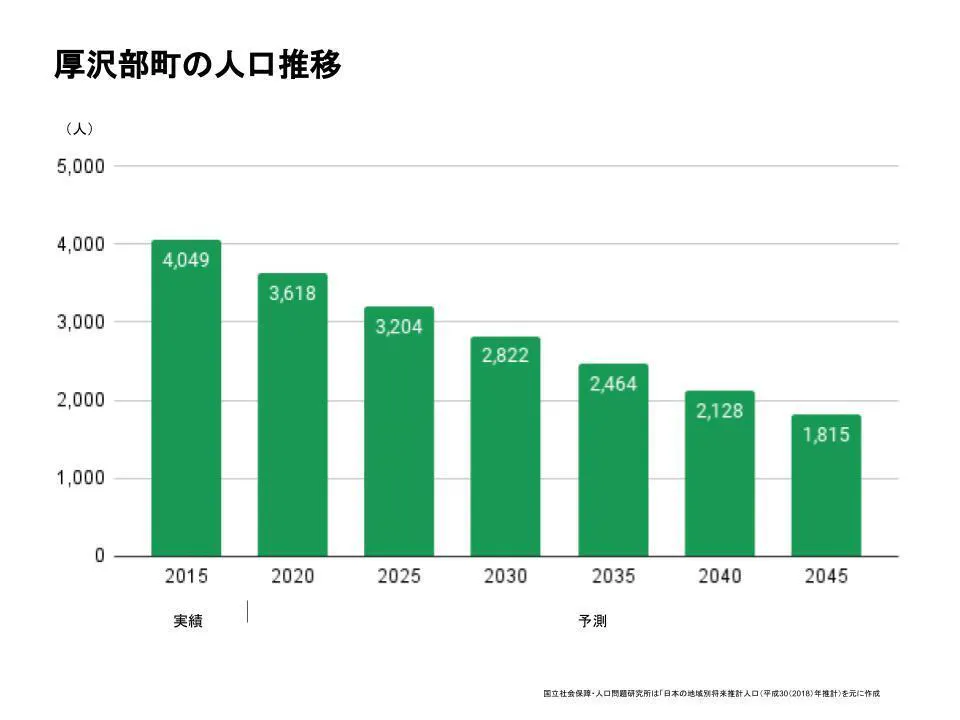 過疎のまち北海道 厚沢部町。20年前と比べて、すでに約70%まで人口が減少しています。子育て世帯の流出もあり、この先もさらに過疎は進む見込みです。