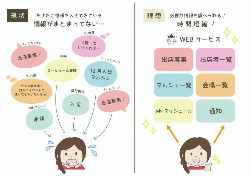 主催者さんは人脈や情報の壁がなくなり、今まで出来なかったマルシェアイデアも実現可能に。