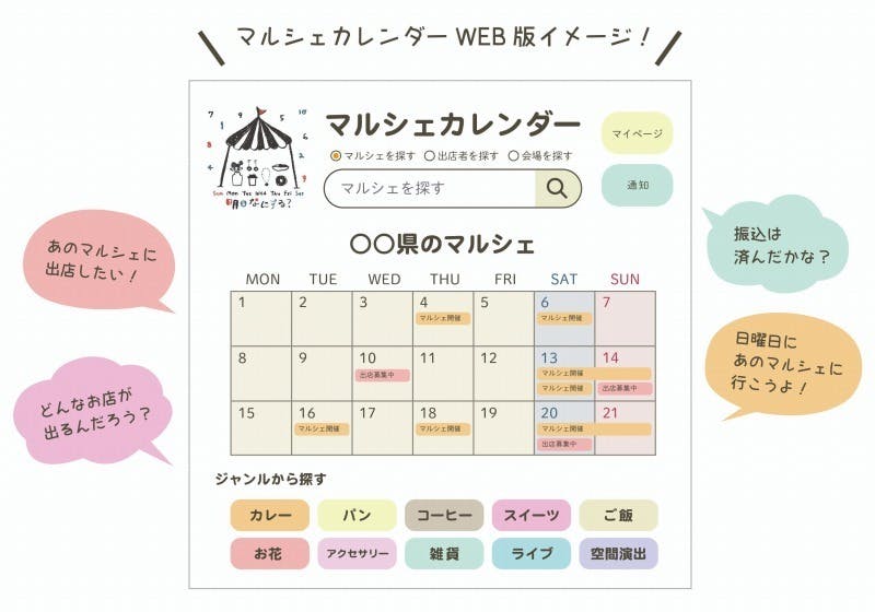 WEBサービス「マルシェカレンダー」の応援よろしくお願いします。