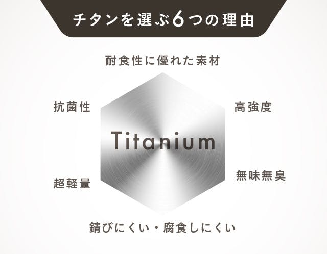 チタンは耐久性や耐腐食性があり、酸やアルカリにも強くて経年劣化がほとんどなく、ステンレスよりも錆びにくいので、一生モノとして長く愛用したい方にもぴったりです。