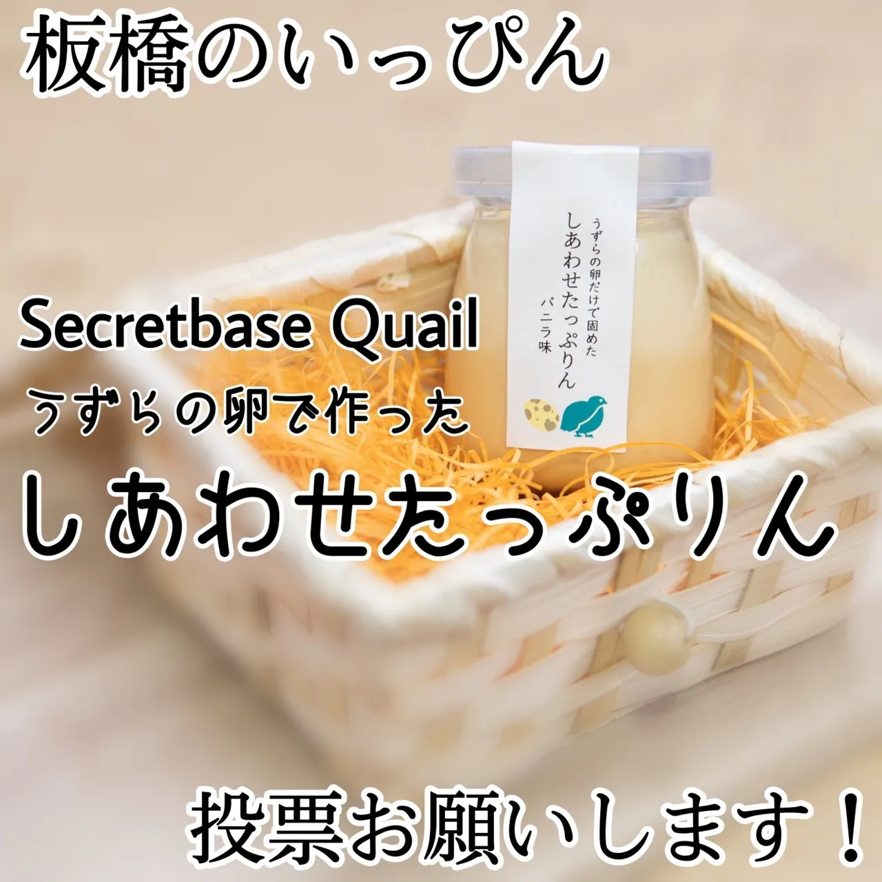 私たち株式会社ごきっちょーも10月16日、東武練馬から徒歩5分の場所にオープンのカフェ『Secretbase Quail』として、うずらの卵で作ったプリン【しあわせたっぷりん】をエントリーしました!!