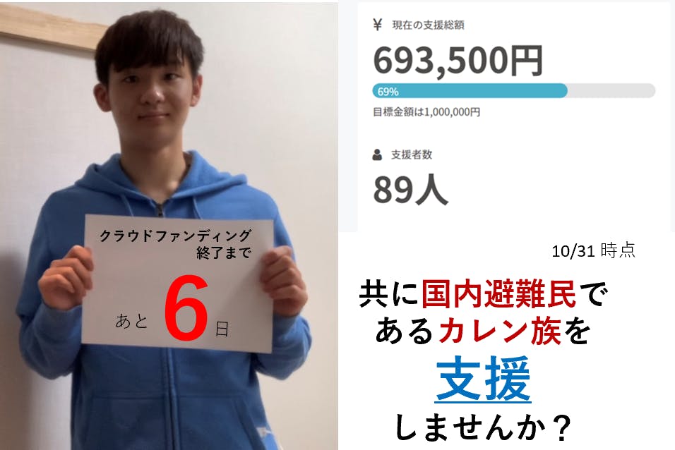 クラウドファンディングの方は、31日時点で69%(693,500円)のご支援を皆様からいただいております。