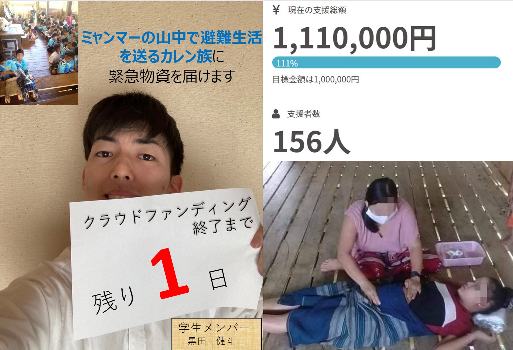 うれしいことに先日目標達成後も支援が増え続け、現在5日時点で111%(1,110,000円)のご支援をいただいております!