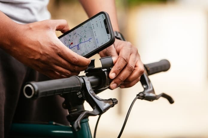 一瞬で取り付け・取り外しが可能なコンパクトなサイクル用スマホマウントです!