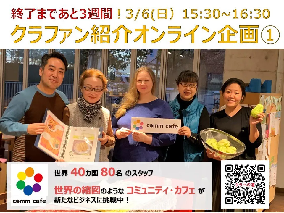 もっと私たちのカフェやプロジェクトについて知ってもらいたい!と、明日(3月6日)から3週連続でオンラインイベントを開催します。