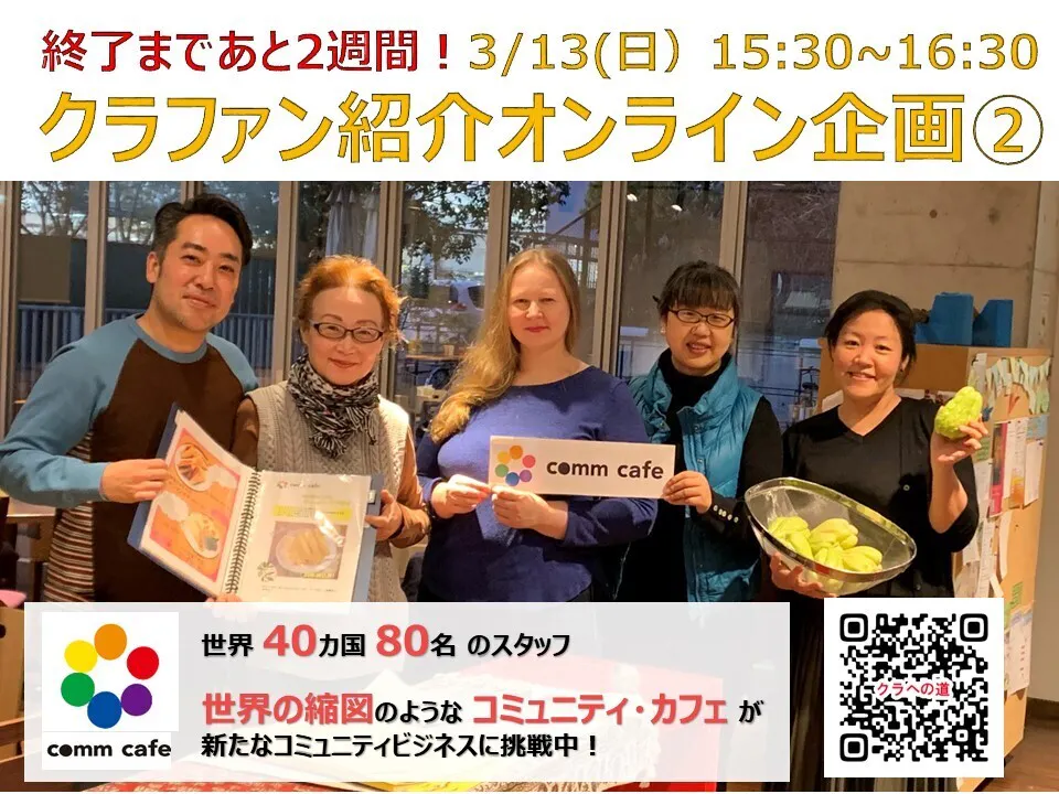 もっと私たちのカフェやプロジェクトについて知ってもらいたい!と、先週の日曜日(3月6日)から3週連続でオンラインイベントを開催します。