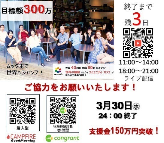 【終了まであとわずか!コムカフェ・クラウドファンディングライブ配信イベント】