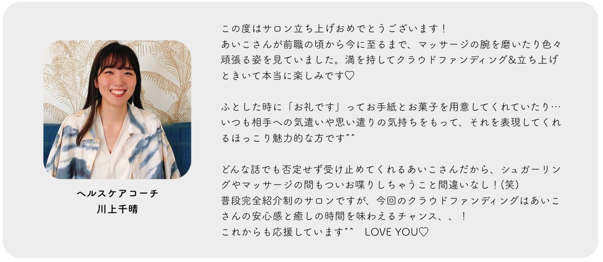 今回、初のクラウドファンディング挑戦に伴い、お客様やコラボリターン先の皆様から応援コメントを頂きました!この場を借りて、応援コメントをご紹介させてください。