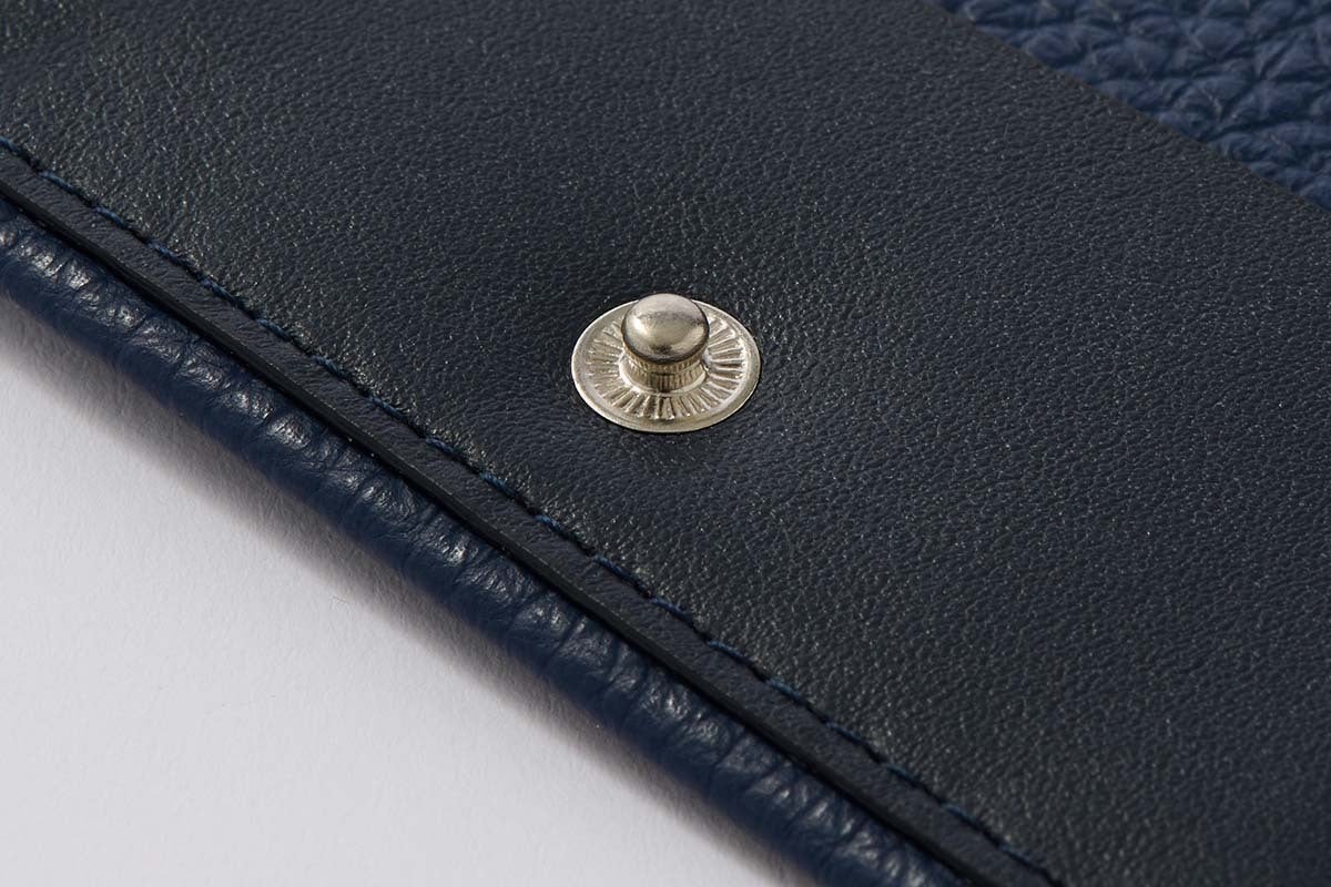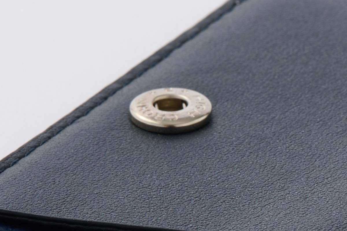 開け閉めの際に重要なドット釦は、久永製作所の上位モデルHIGH-CROWN(ハイクラウン)の釦を採用。真鍮製ならではの豊かな表情と耐久性は、毎日使うものだからこそ高品質な素材が求められます。