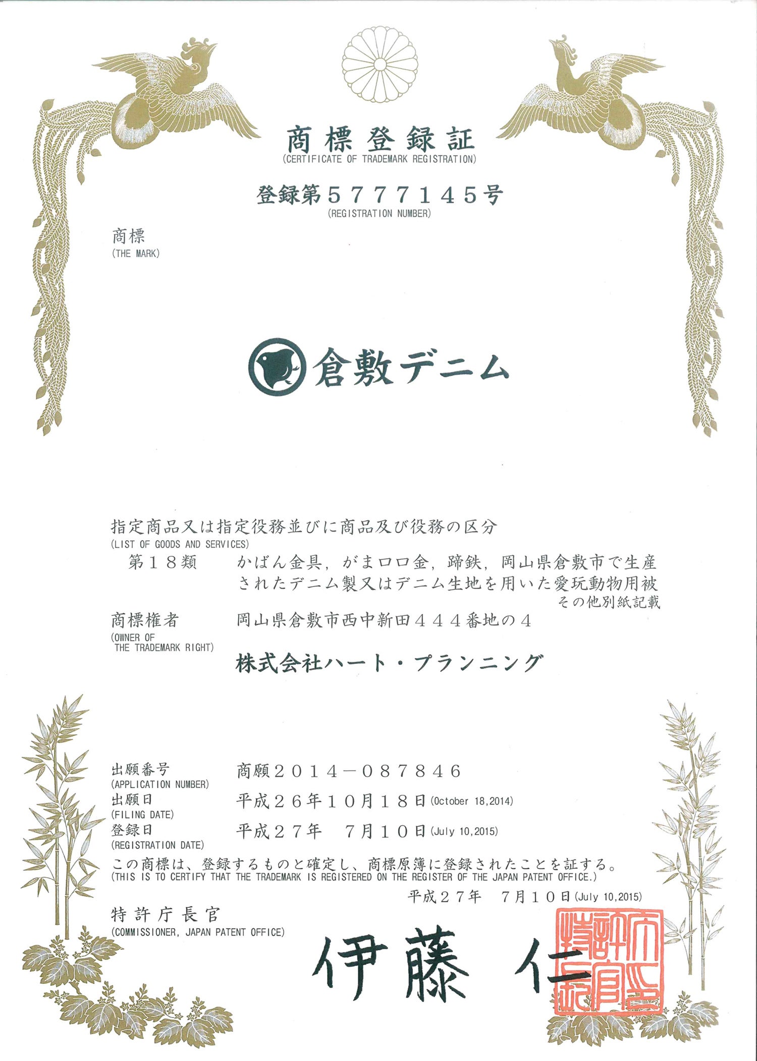商標登録「倉敷デニム」