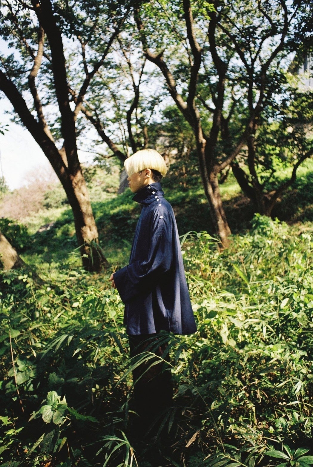 キャプラテンセル素材を使用したハイネック仕様のプルオーバーシャツになります。ネックサイドから肩にかけて釦がついているため着脱がしやすく、衿を折り返して着用する事も可能。キャプラとテンセルの混紡によりやわらかさとしなやかさがあり程よい光沢感があるためオーバーなサイズ感でも野暮ったくならず上品な印象。太すぎないフレアスリーブになっておりキレイめすぎずモードすぎることのない中和された全体的なシルエットになっています。前着丈と後着丈の長さが異なり、前から見ればボックスシルエットでサイドから見れば奥行きを感じ角度によって見え方が変わるようにしています。メンズ、レディース共にご着用いただけるようなサイズ感に設定しており、まさにジェンダーレスなデザインになっています。ロングコートにタートルネックのニット、ではなくハイネックシャツをインする事で生まれる上品さを提案しています