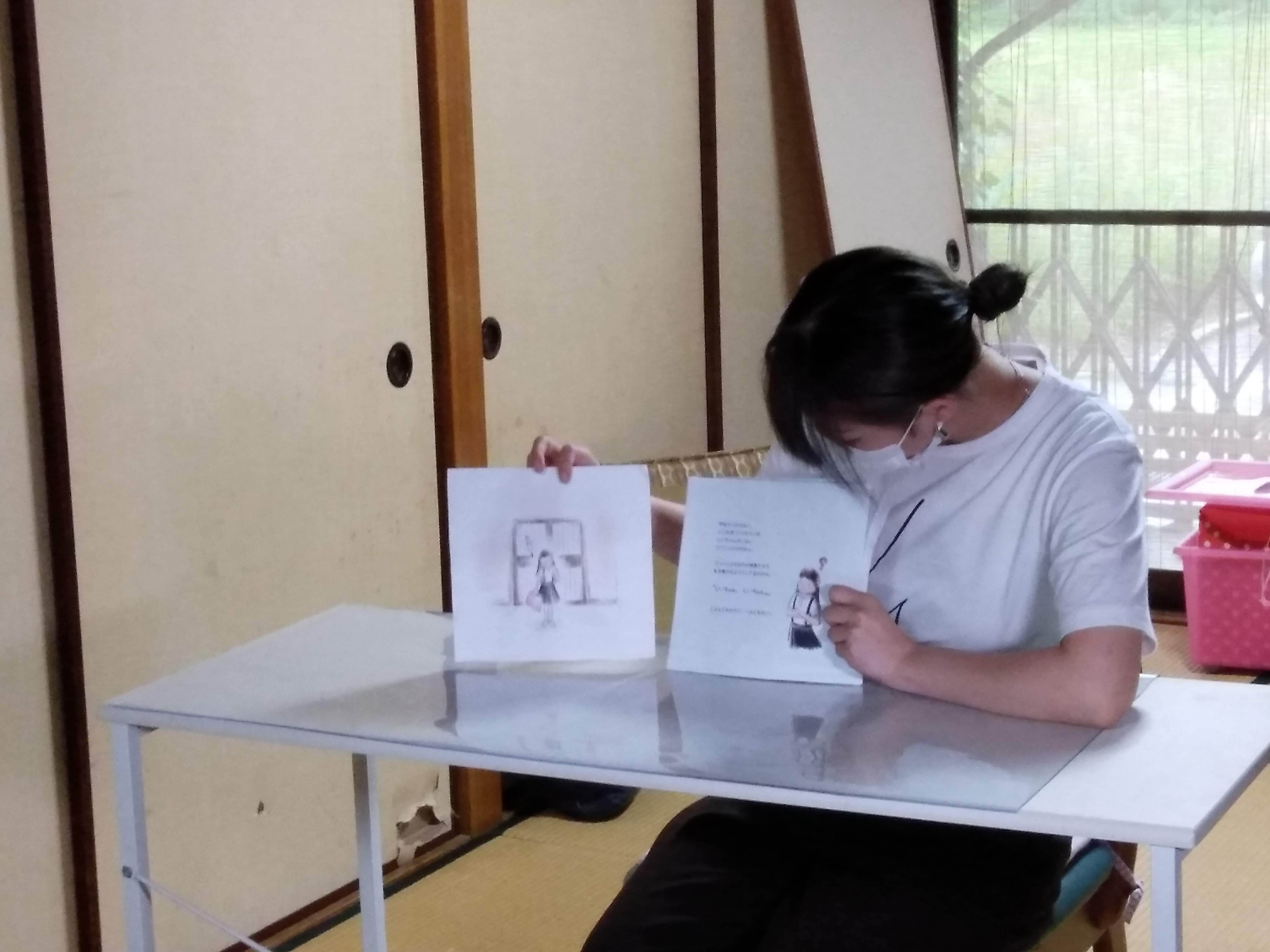 仮の完成絵本でメンバーに読み聞かせ