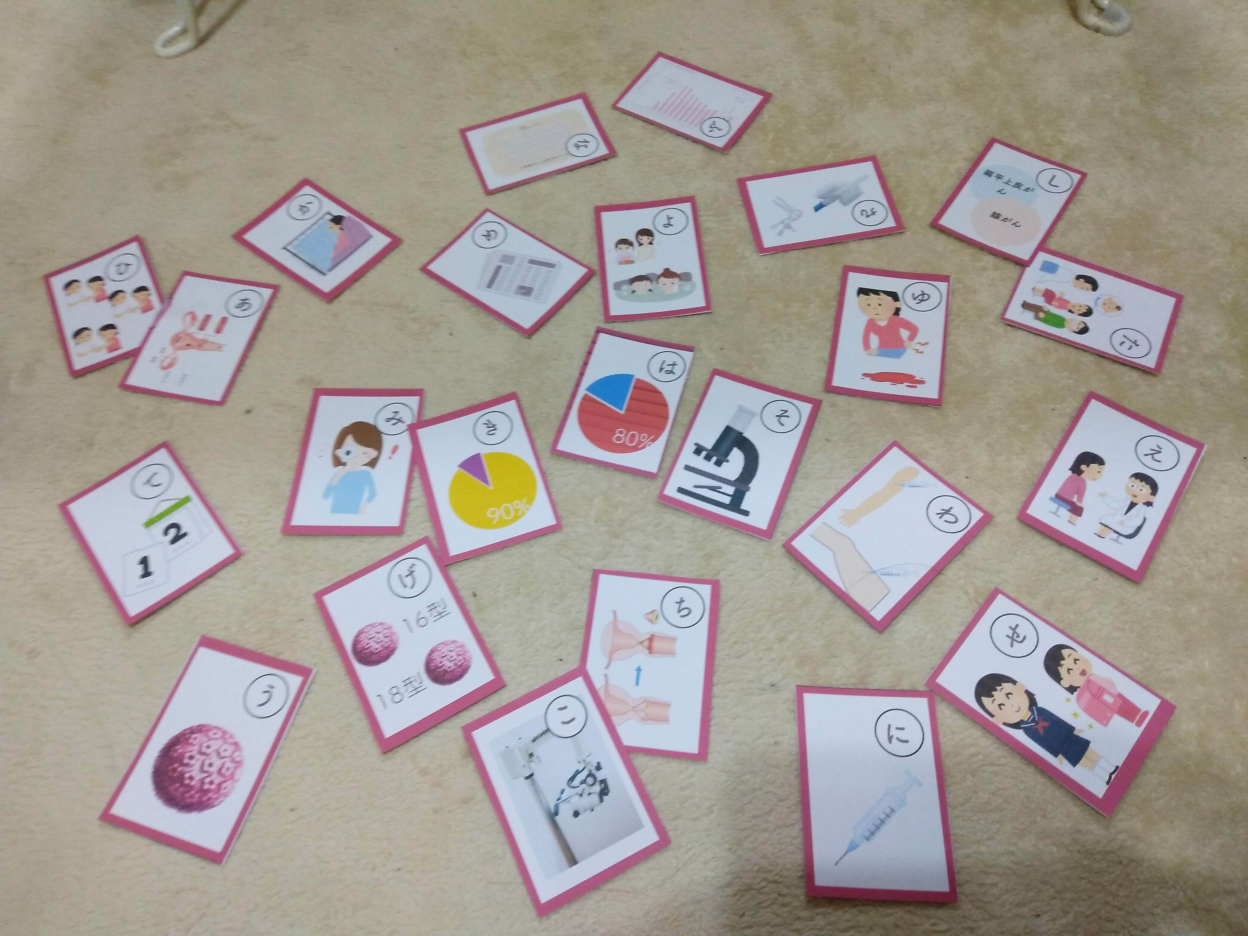 ↑Lumiereさんからカルタデータをご提供いただき、子宮頸がんについて学びました。(ルミエール/品川女子学院高等部3年)