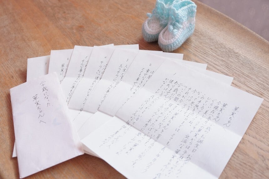 2021年、二十歳を迎える私の下に「20歳の華実ちゃんへ」「25歳の母より」と書かれた手紙が届きました。それは、初節句のお祝いに、未来の私に向けて書いた母からの手紙です。そこには、今を一緒に過ごしているかのような母からの愛情いっぱいの言葉が書き記されていました。