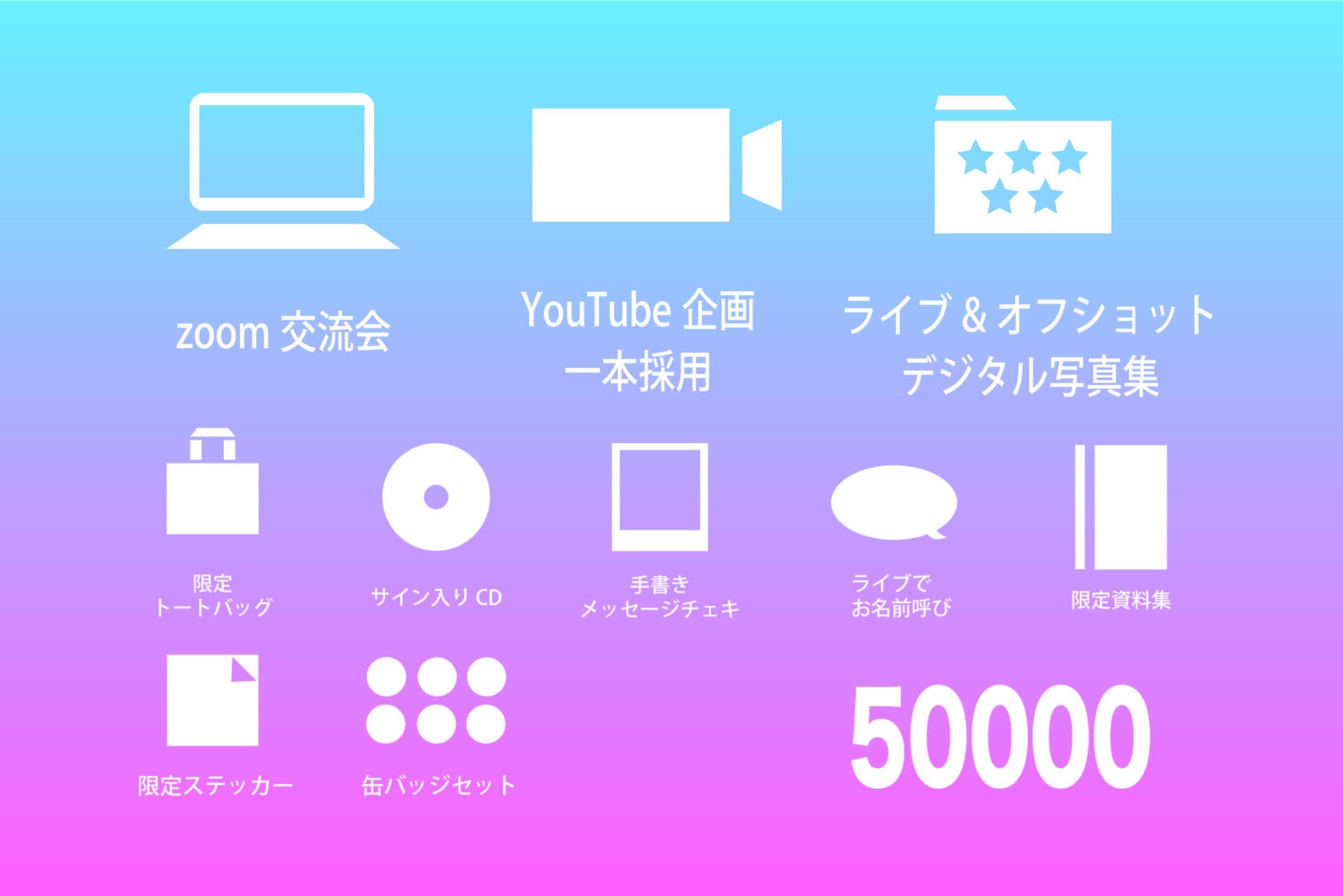 直接会える機会が少ない今日、みんなに笑顔を届ける為にYouTubeやSNSなどオンライン上での活動してきました。その集大成として、オンラインライブを開催したいです!