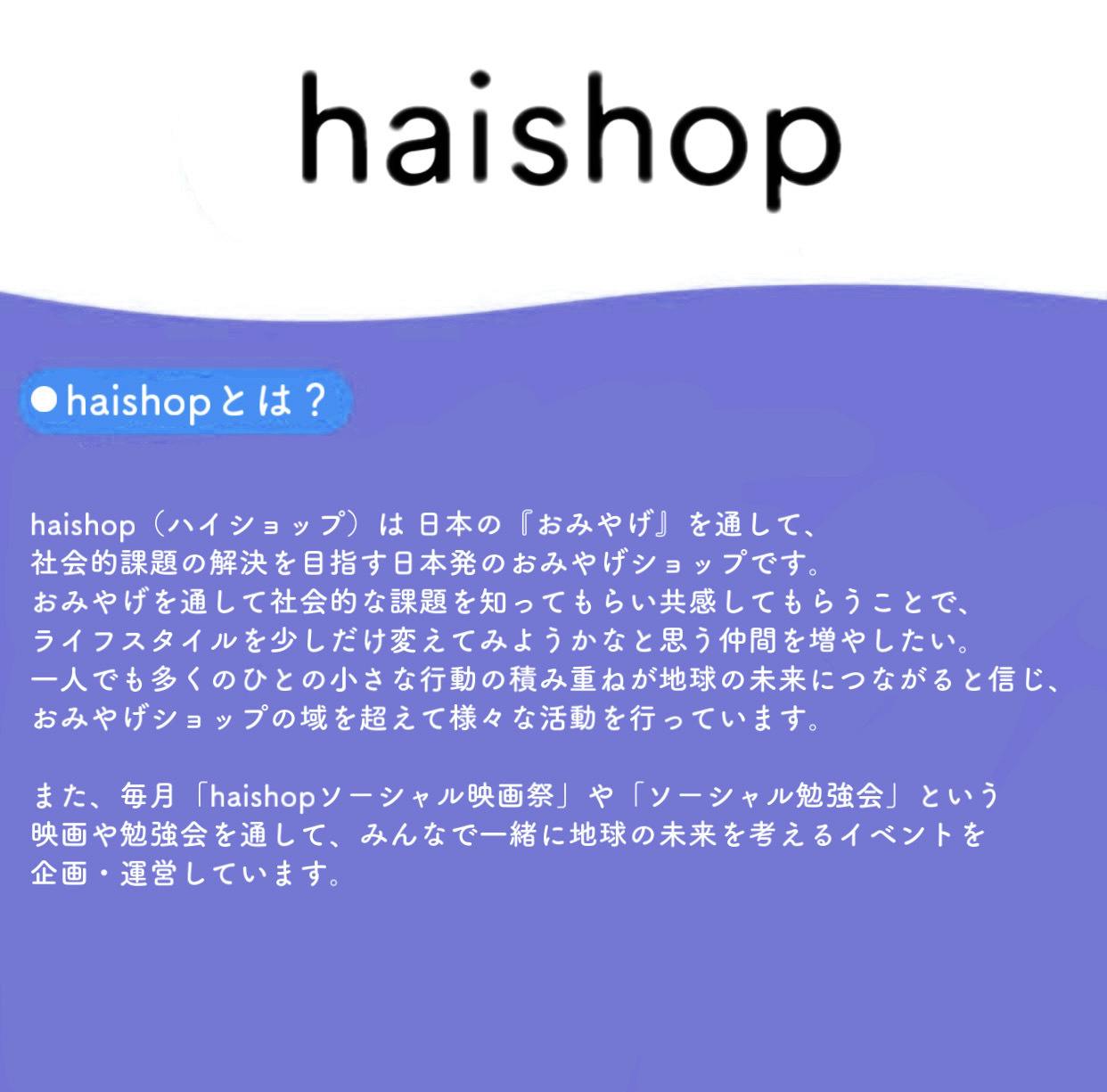 この度、社会的課題の解決を目指されているおみやげショップ「haishop」様がともだちサンタにご協力くださることになりました!!今後は、様々な面でともだちサンタの活動をサポート頂きます。